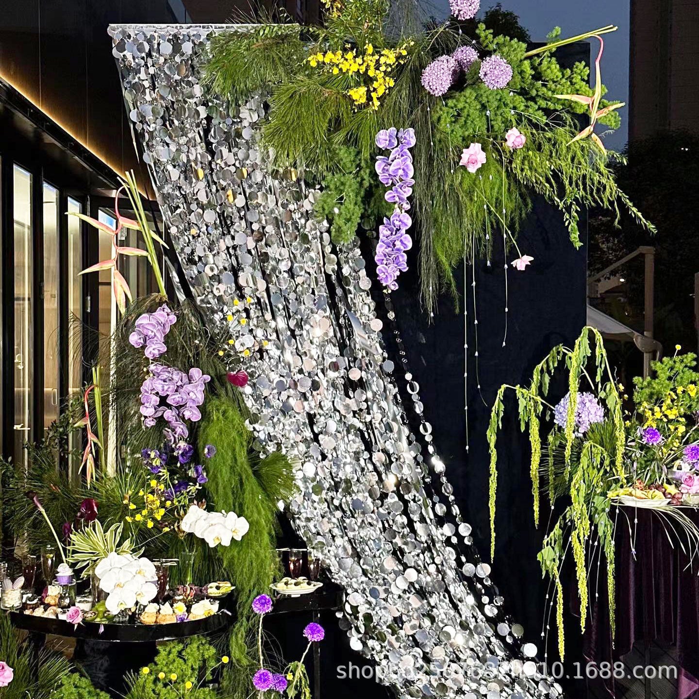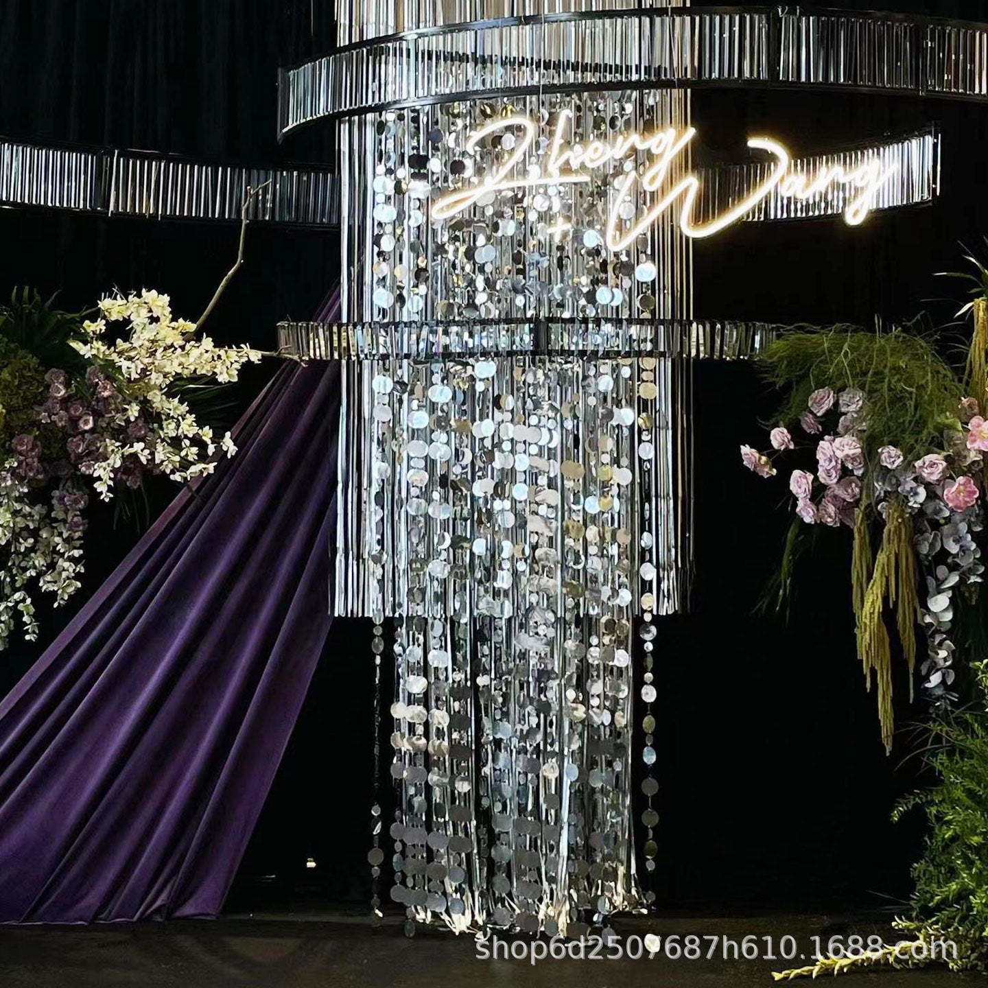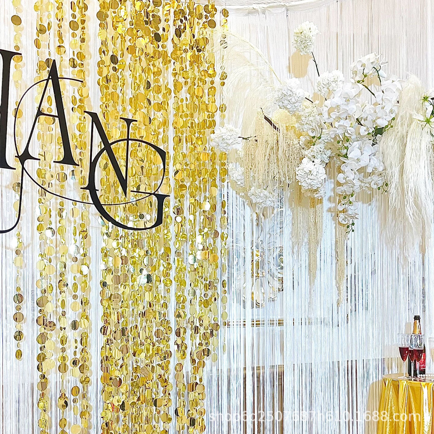 婚庆亮片串布置美陈装饰金色银色珠光串门帘挂帘婚礼吊顶背景