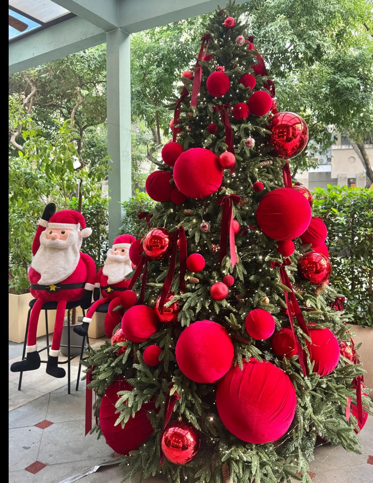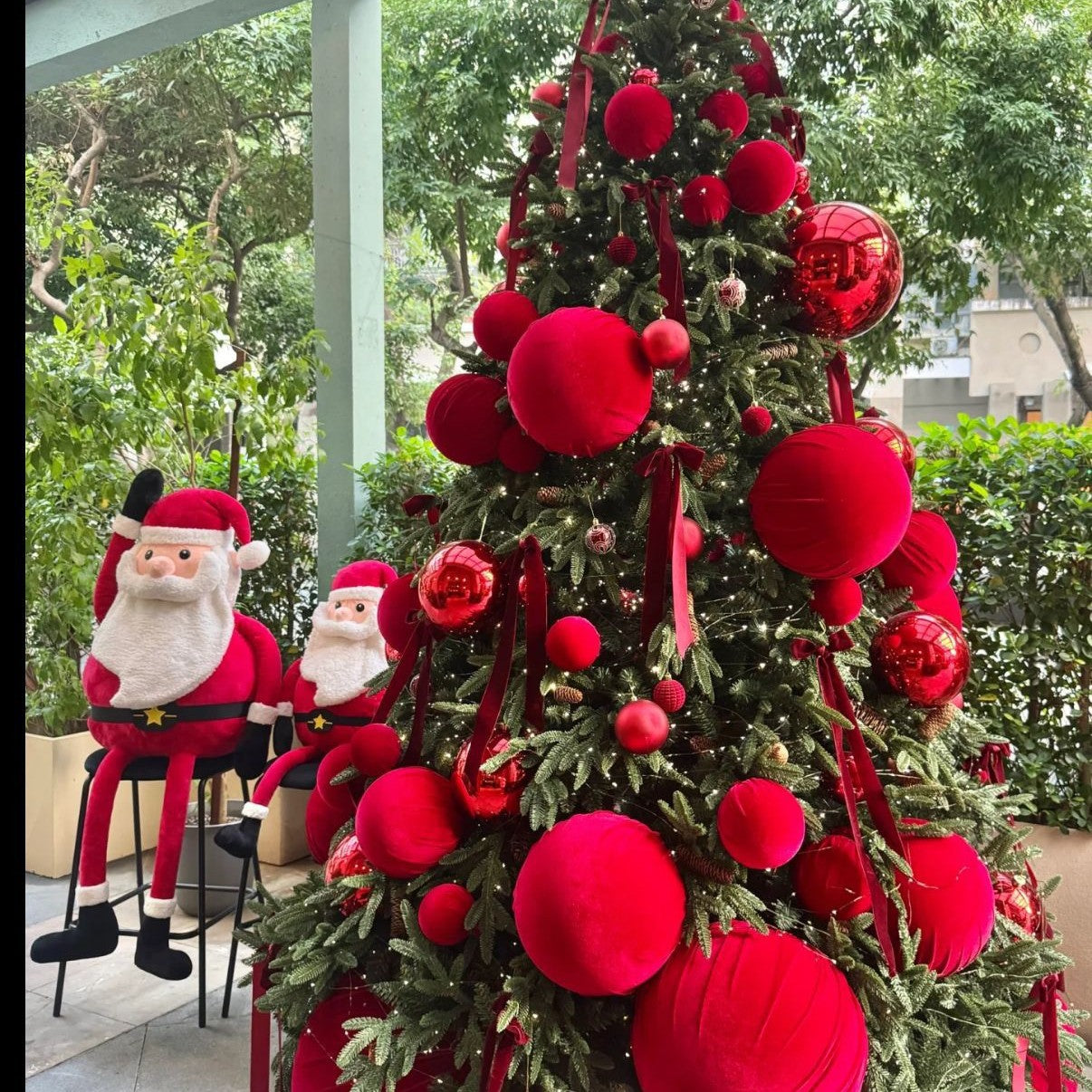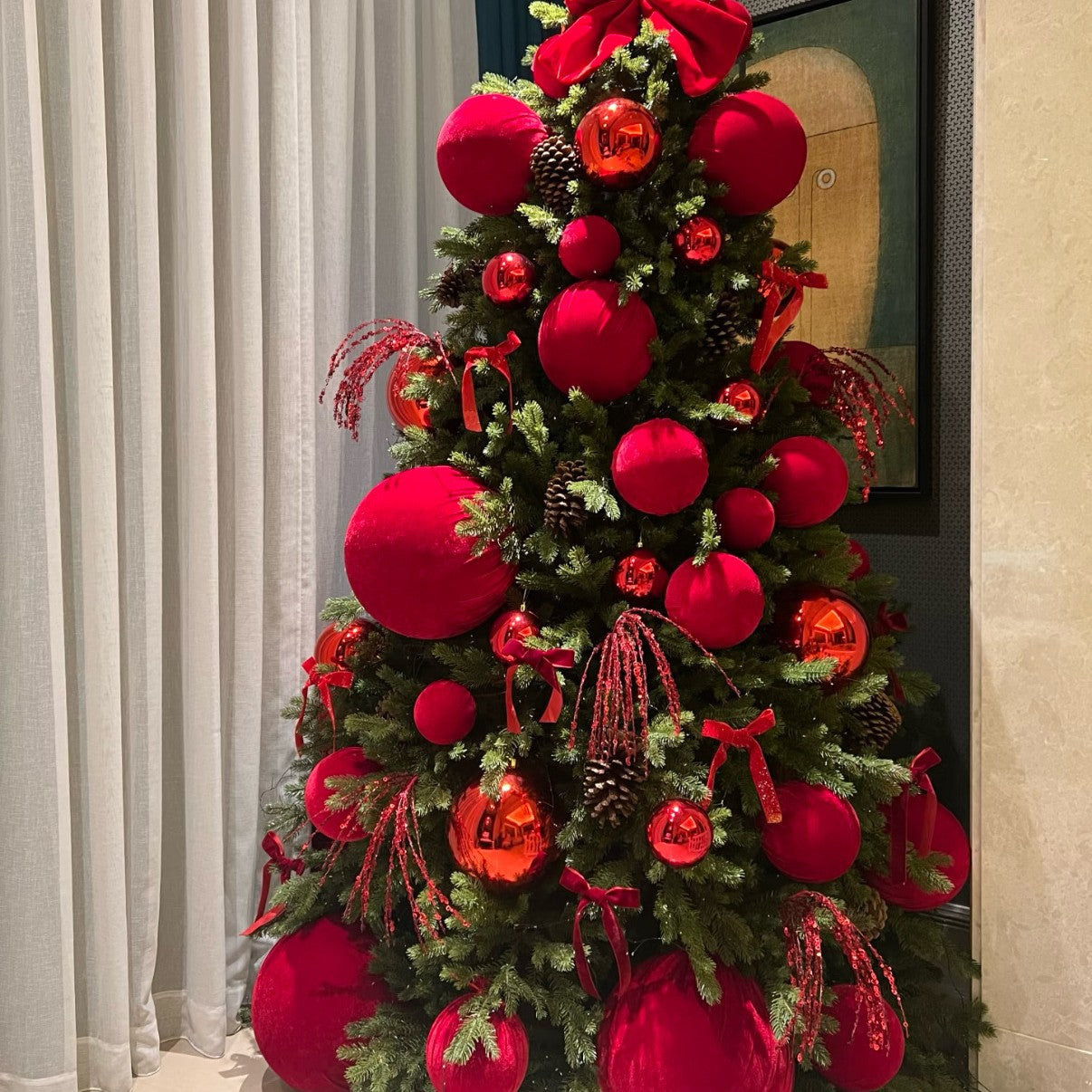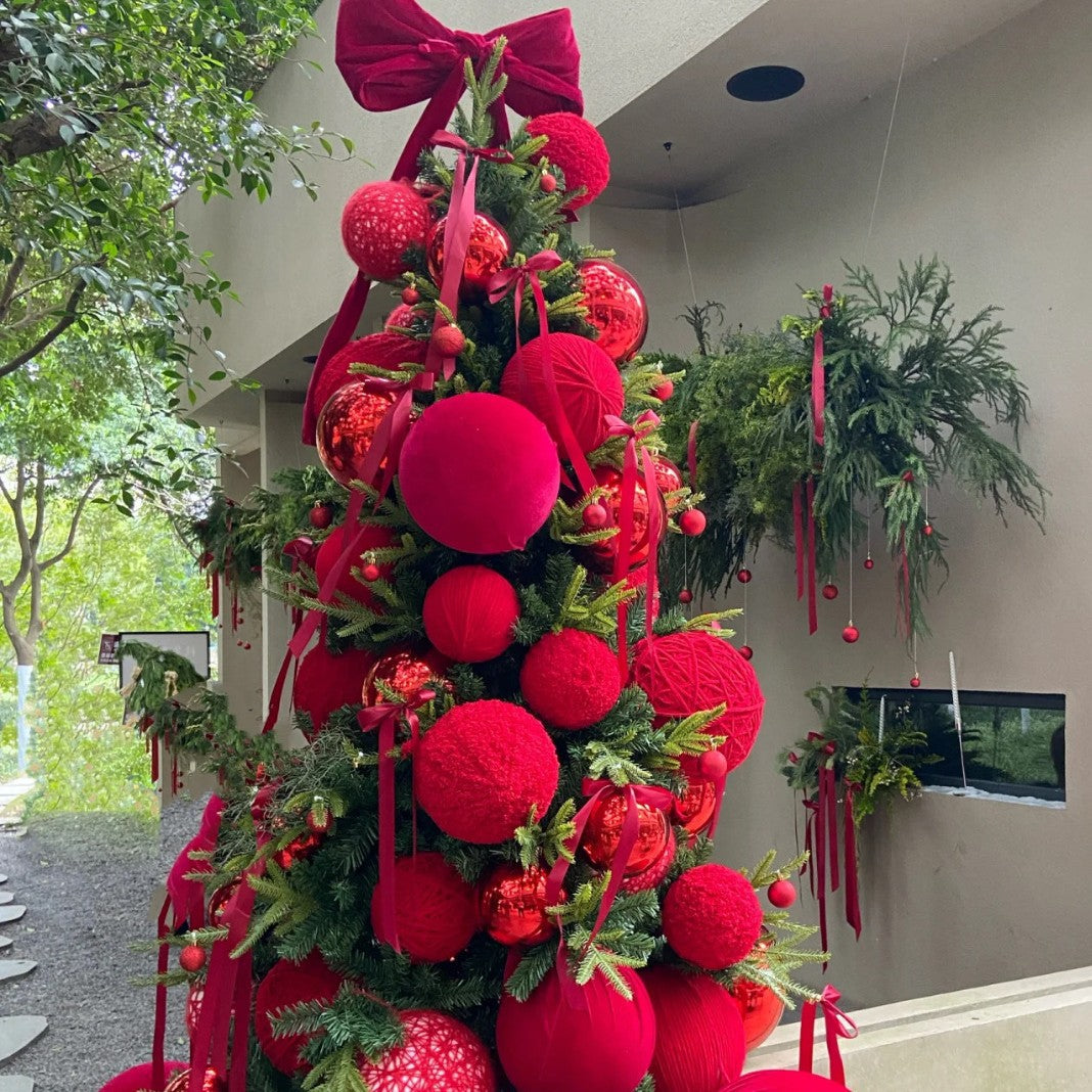 红丝绒球 圣诞树蝴蝶结节日装饰挂件打卡点店铺网红陈列造景布置