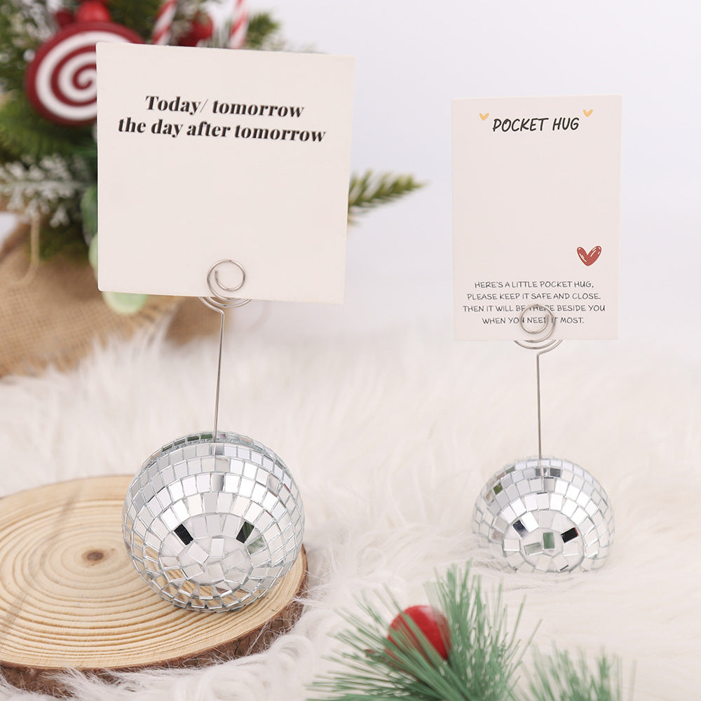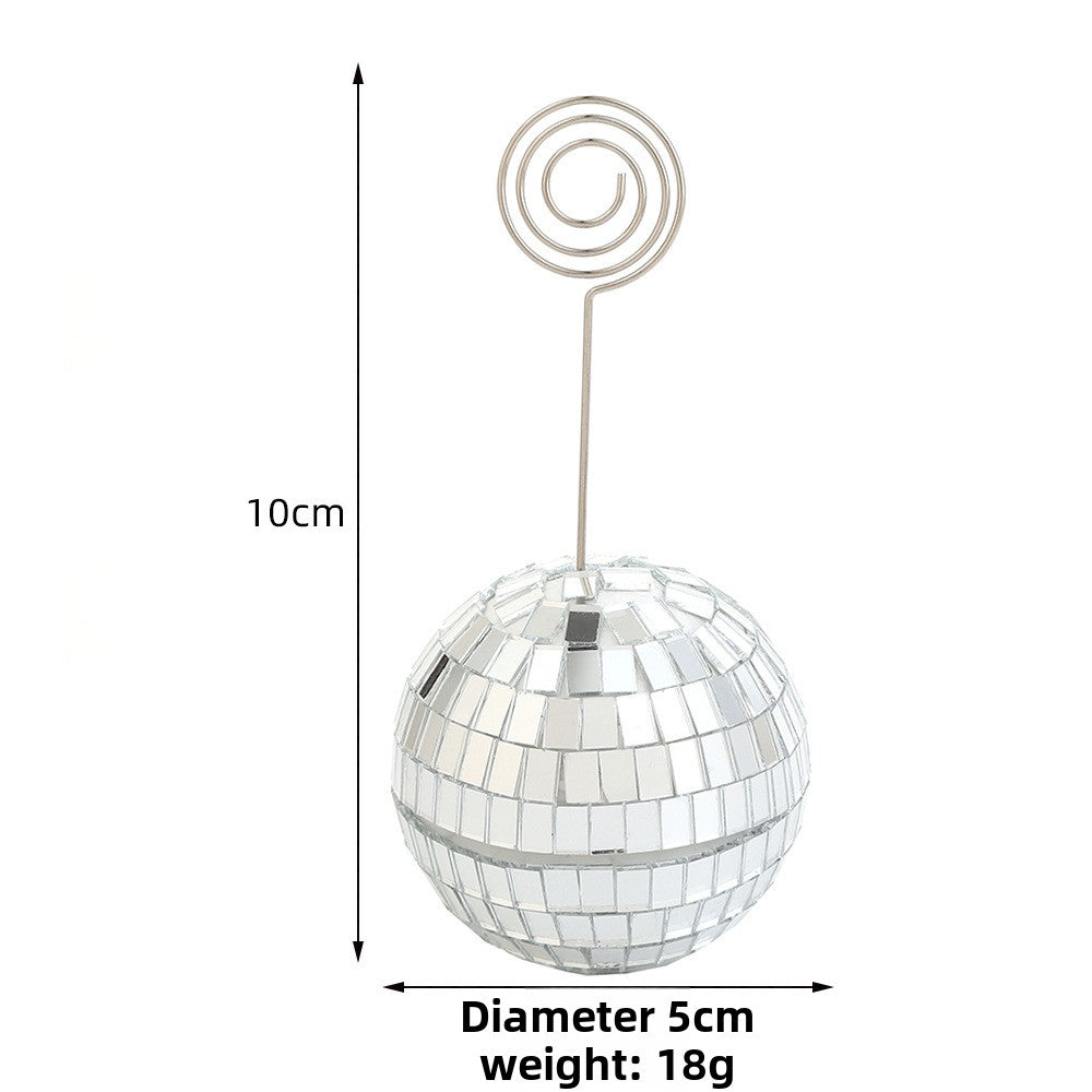 银色迪斯科球名片夹婚礼派对装饰展示照片夹桌面镜面球号码架摆件