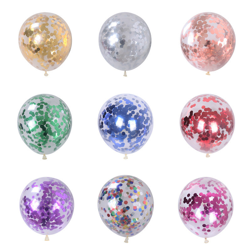 12寸亮片气球透明乳胶纸屑汽球 婚庆生日装饰气球地推扫码小礼品