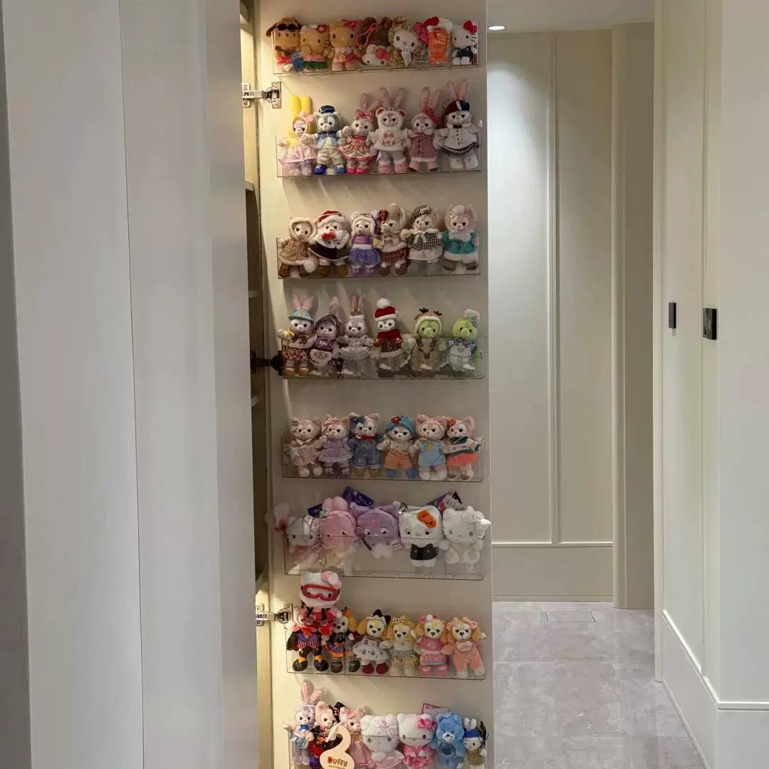 High-end ins-style acrylic wall shelf for doll display, no-punching storage rack for ornaments and figures.