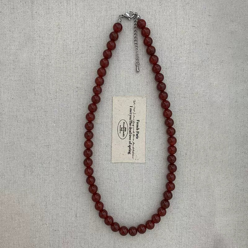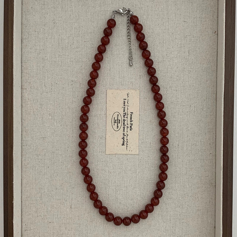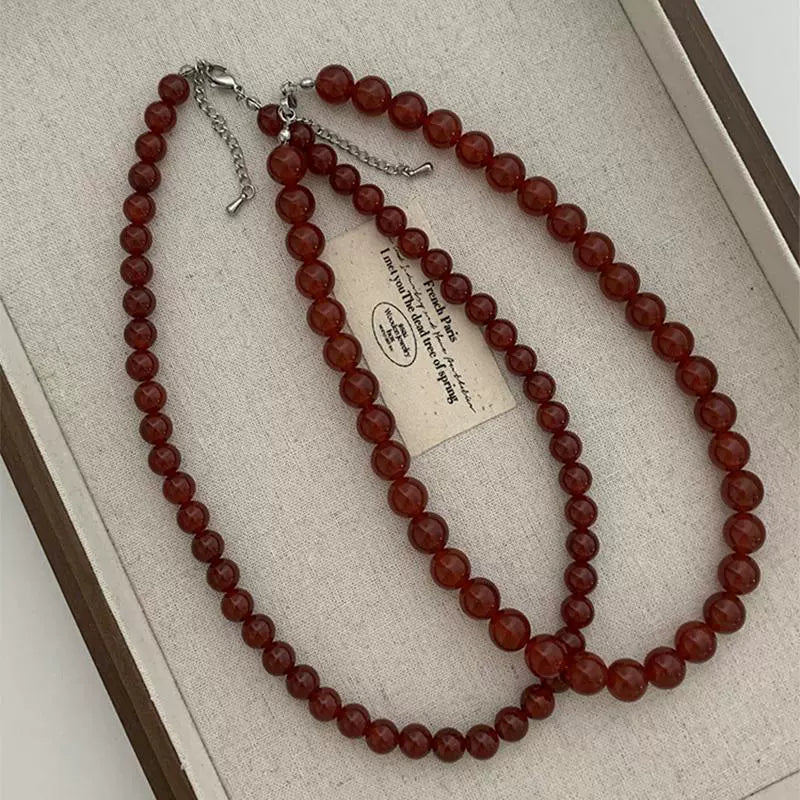 Retro natural agate chalcedony beaded necklace, niche high-end collarbone chain