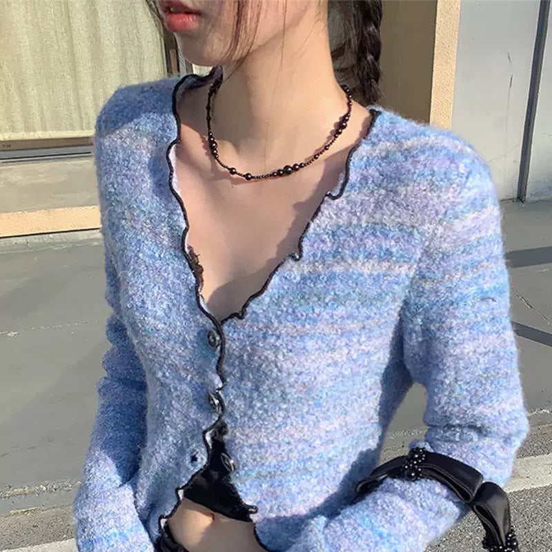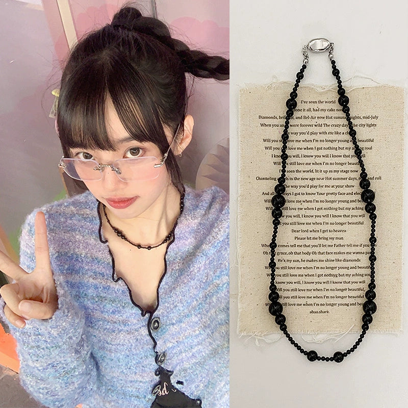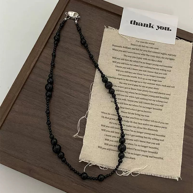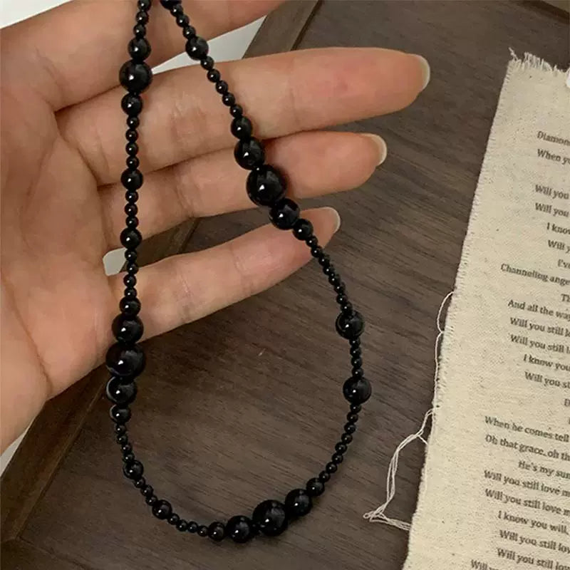 Retro black agate gradual change round beaded necklace, niche light luxury collarbone chain.