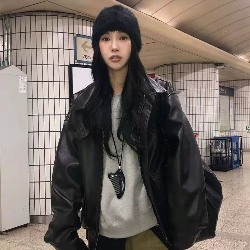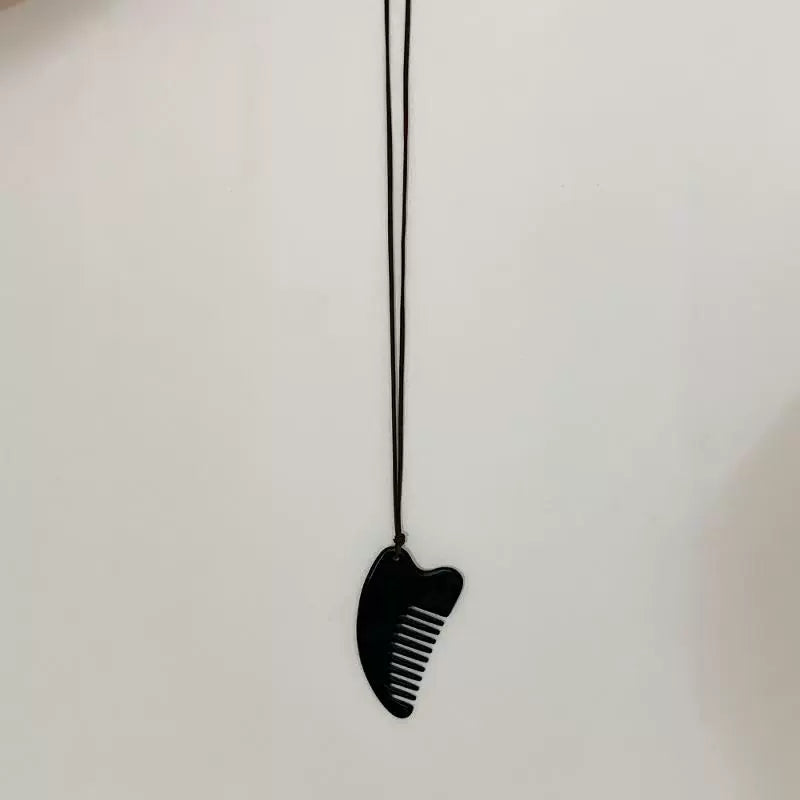 South Korea new black leather rope with water horn comb pendant, niche high-end sweater chain.