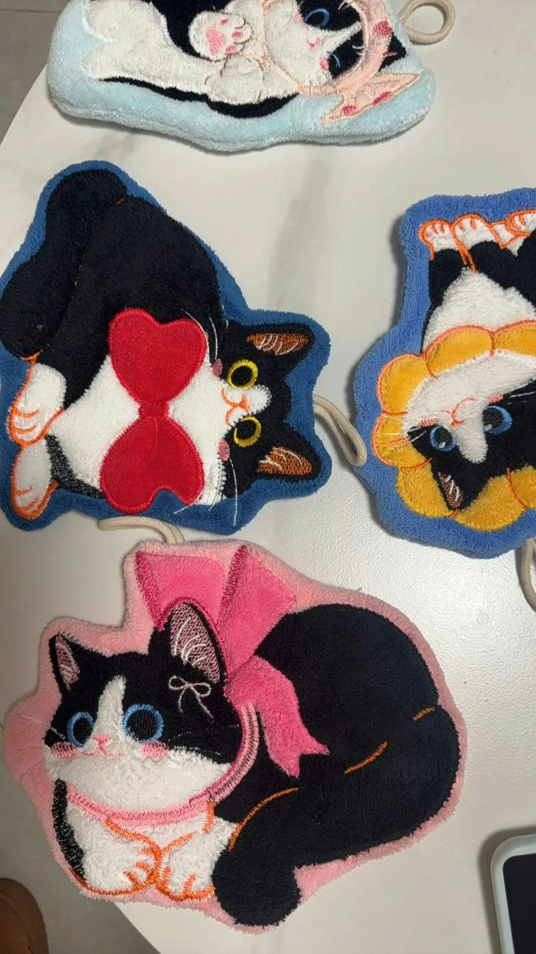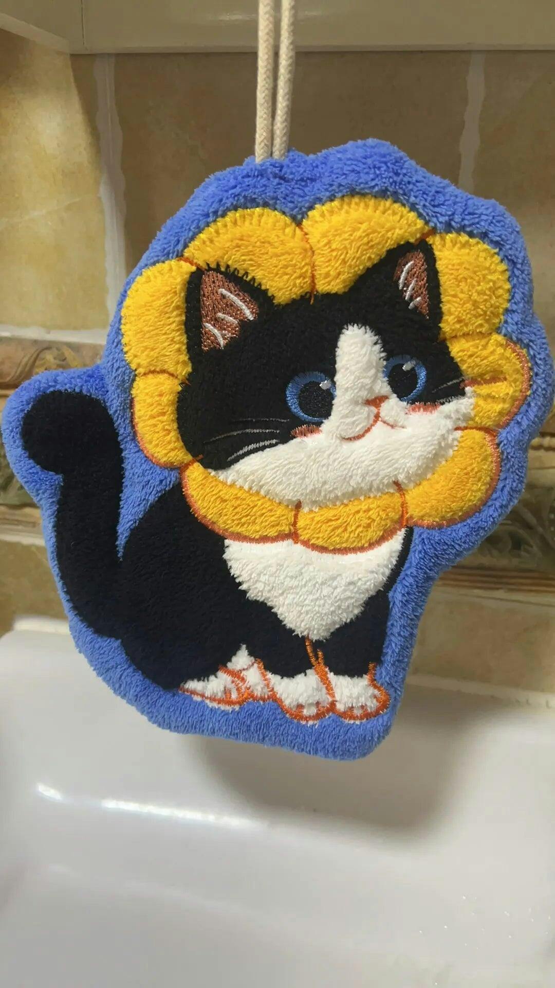 - Playful cat-shaped hand towel design