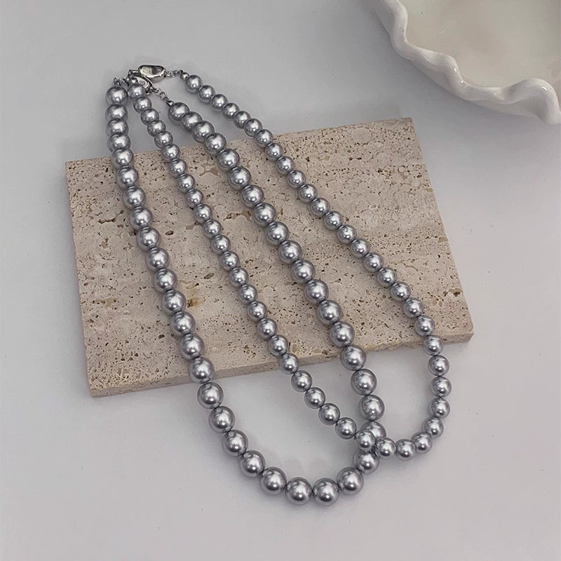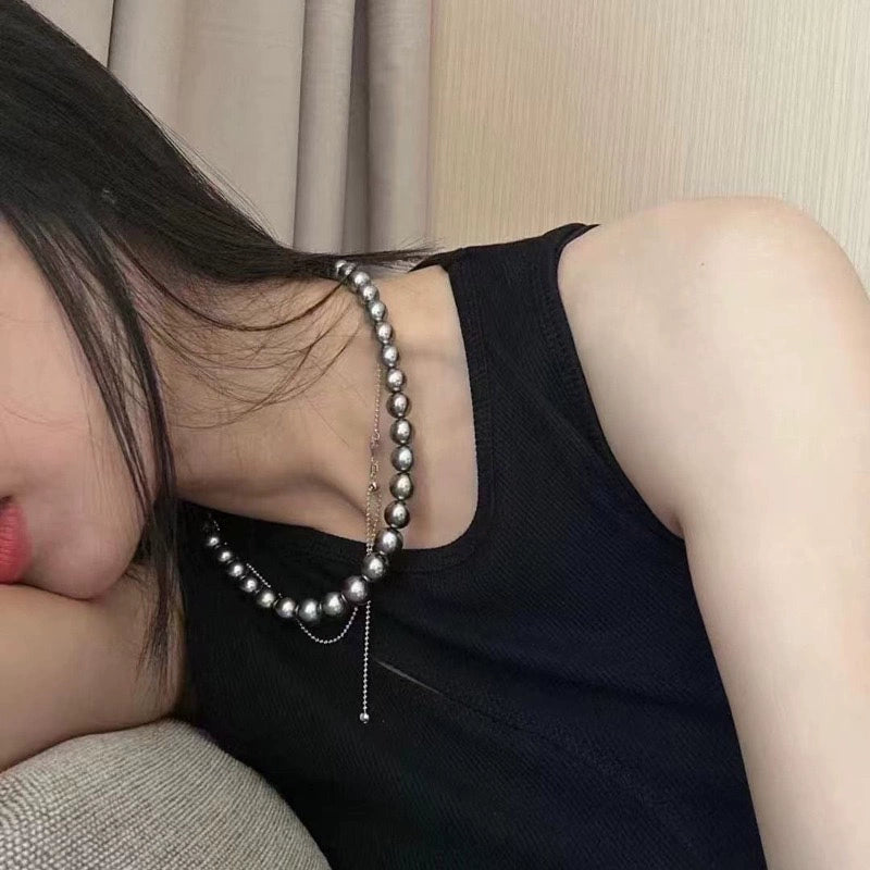 Shijia Zhenduo hemp gray pearl necklace, 2025 French high-end stacked collarbone chain for women.