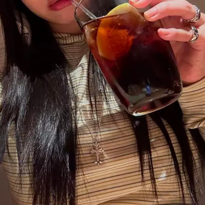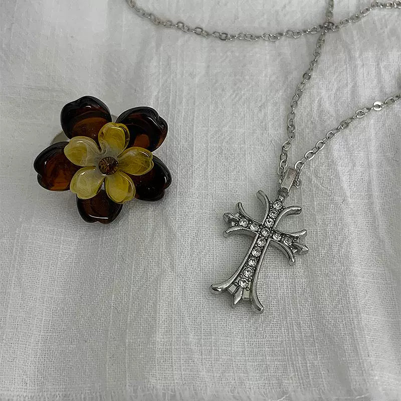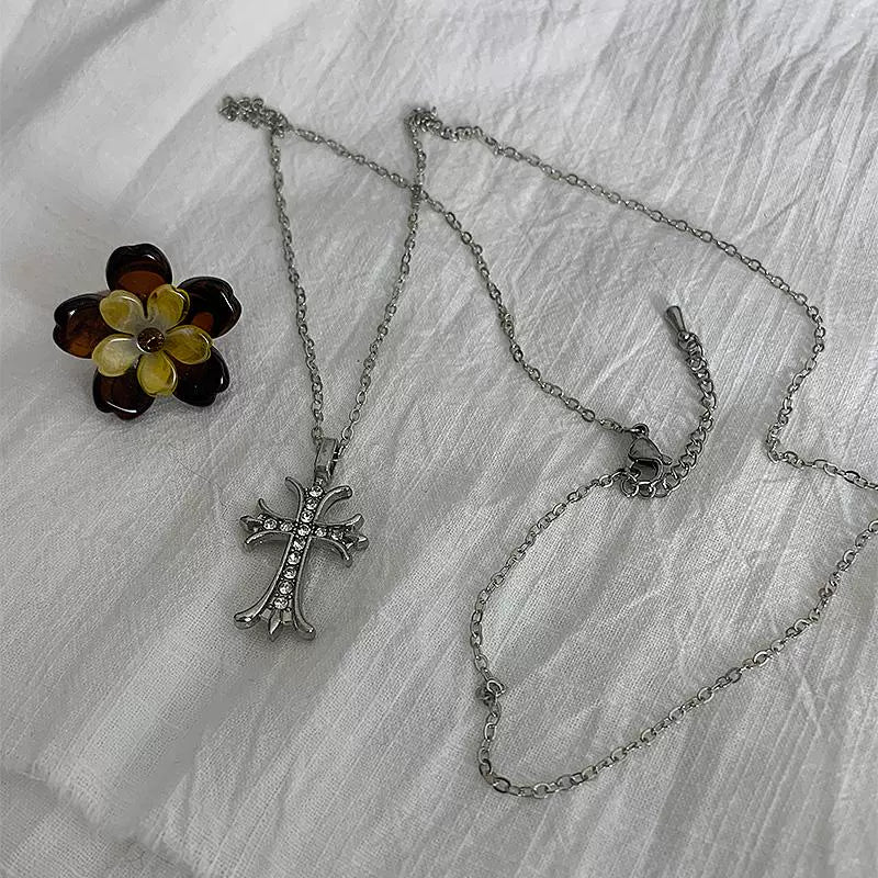 South Korea Jennie silver diamond cross pendant, high-end fashion long sweater chain for women.