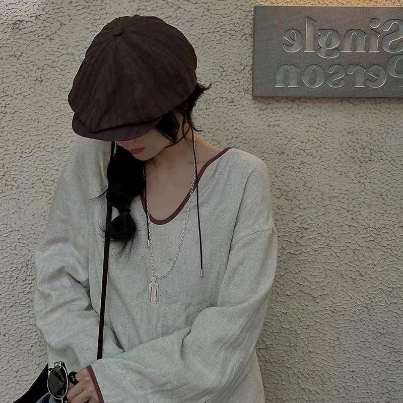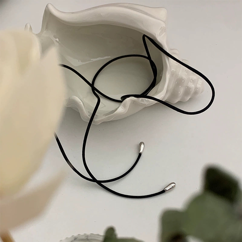 Korean niche choker with water drop pendant, lace-up strap for multi-wear, simple long collarbone chain.