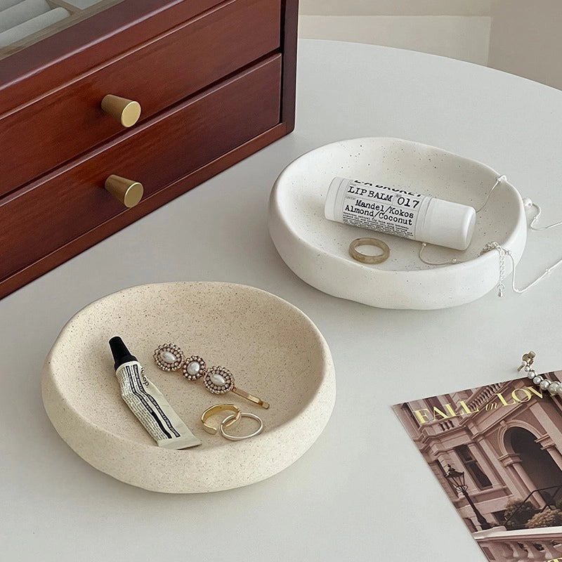 Nordic style round ceramic tray, perfect for jewelry, rings, and entrance desktop storage.