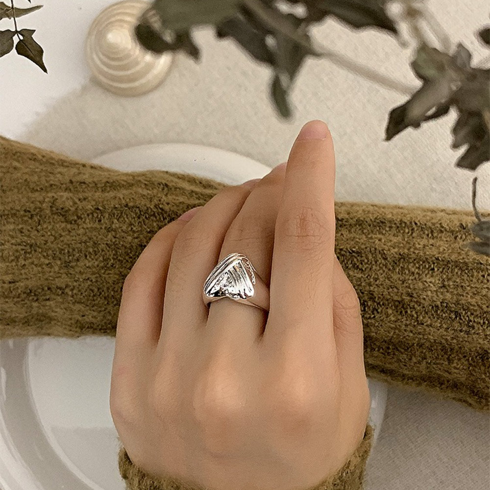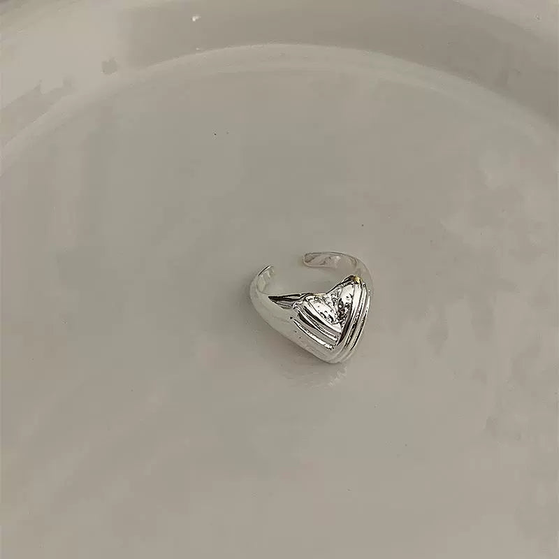 Korean Happy Rim-inspired peach heart metal ring, niche retro fashion jewelry.