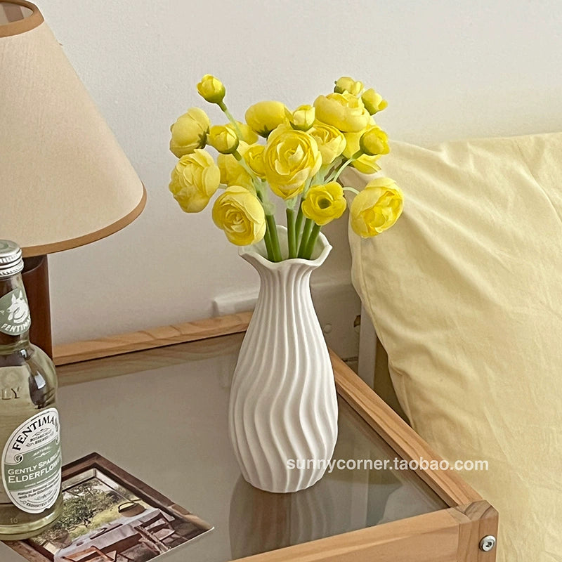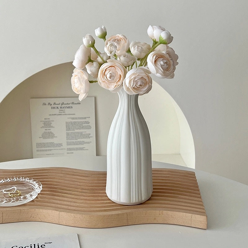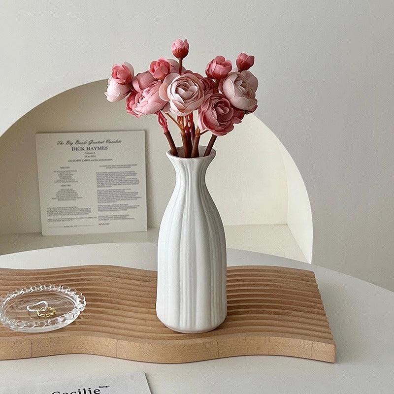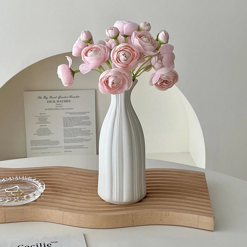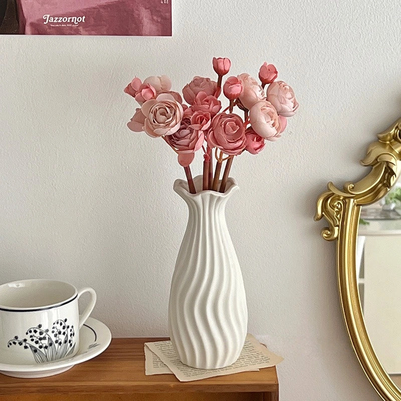 Simulated foreign peony with dew lotus in vase, high-end faux bouquet for elegant living room dining decor.