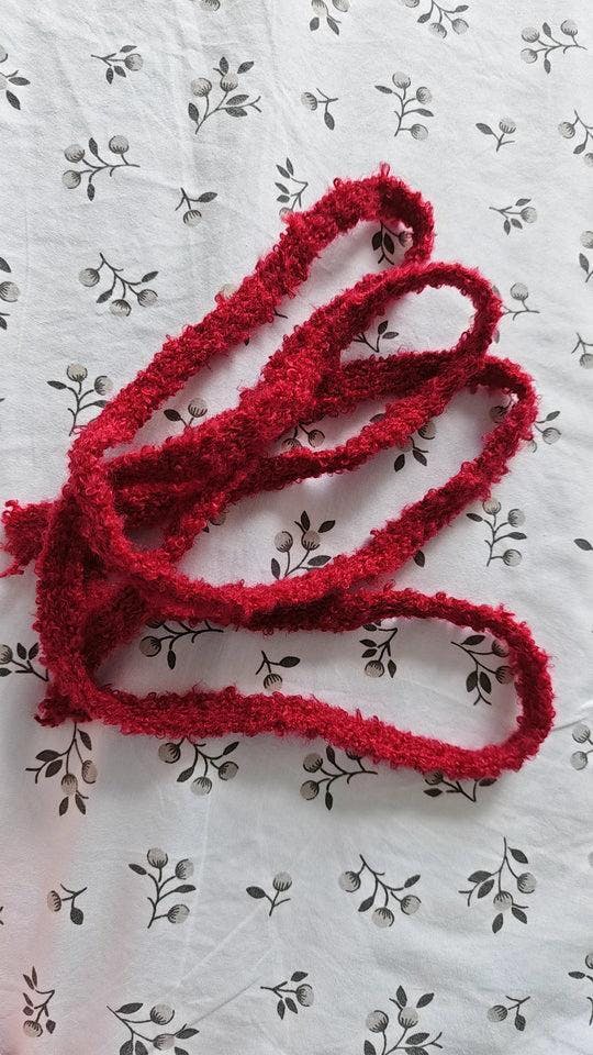 L.S. Soft plush fabric, sits nicely close to the neck. I wear it under jackets and as a subtle statement with dresses. A bit snug if you like loose scarves.