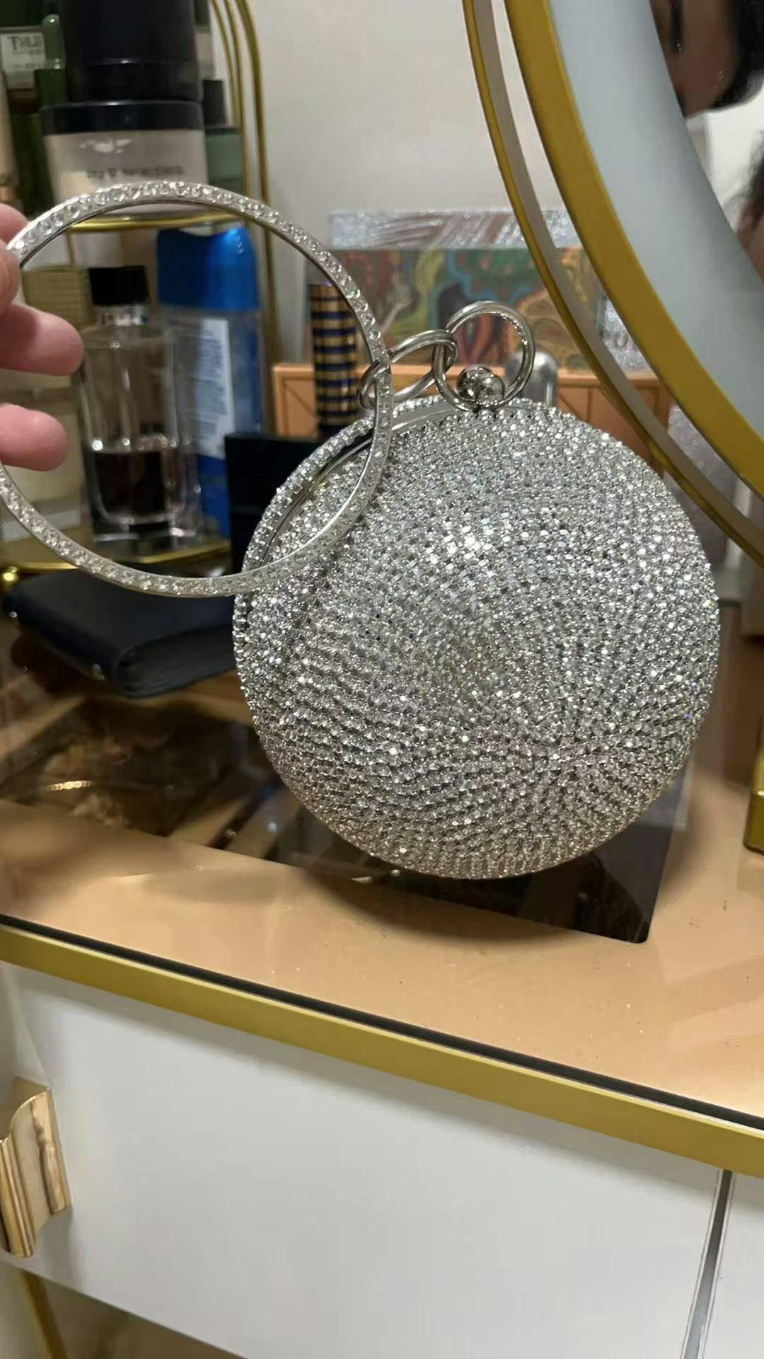 O.J. A lovely statement bag for evenings. The rhinestones catch every light and it feels well-made. Slightly heavier than I expected but still comfortable to carry.