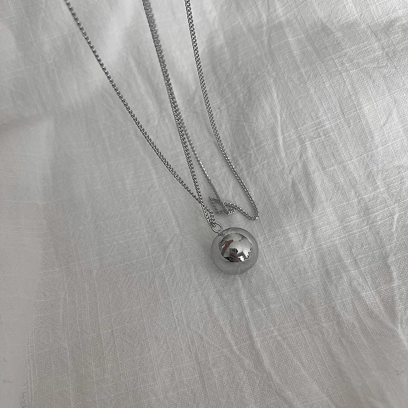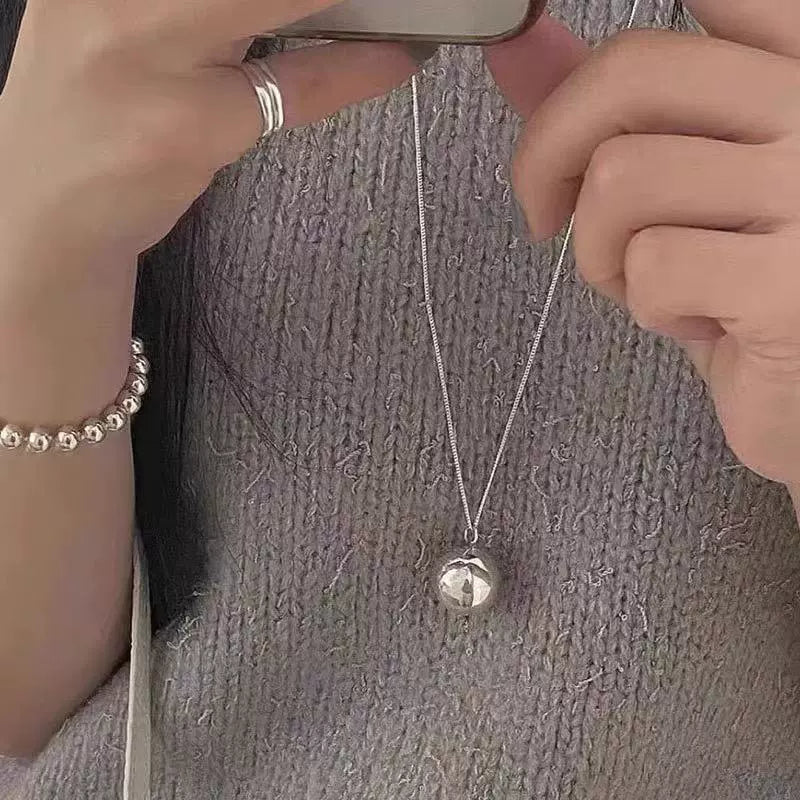 Korean blogger silver ball pendant necklace, niche high-end versatile long sweater chain for women.