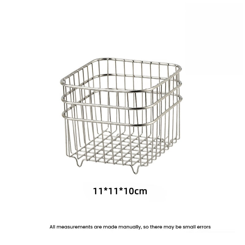 Wrought iron stainless steel basket rack for washstand cosmetics storage, ideal for bathroom desktops.