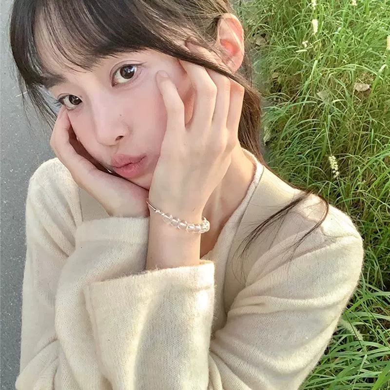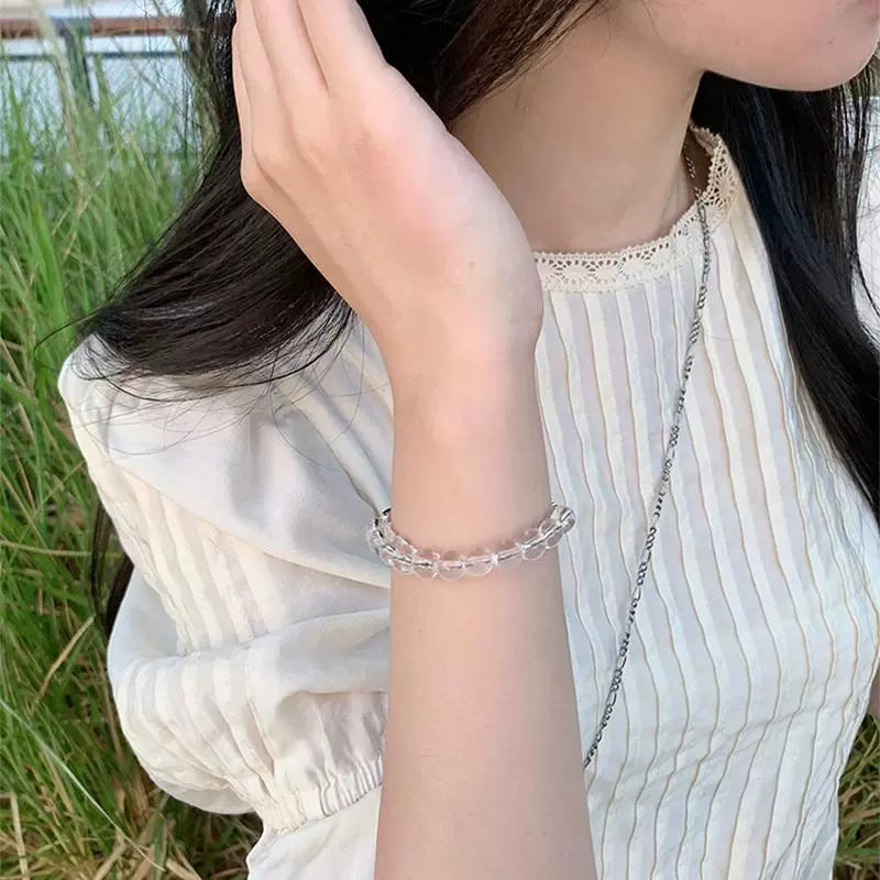 Niche ins transparent crystal beaded bracelet, small fresh Zhao Lusi same fashion single ring for girls.